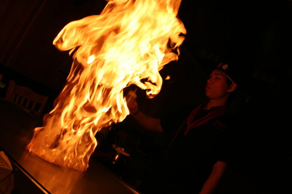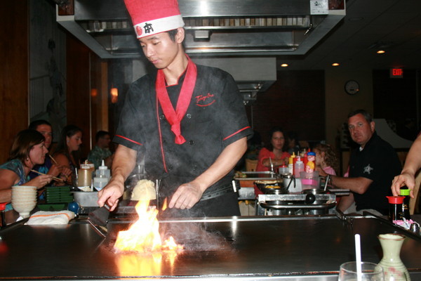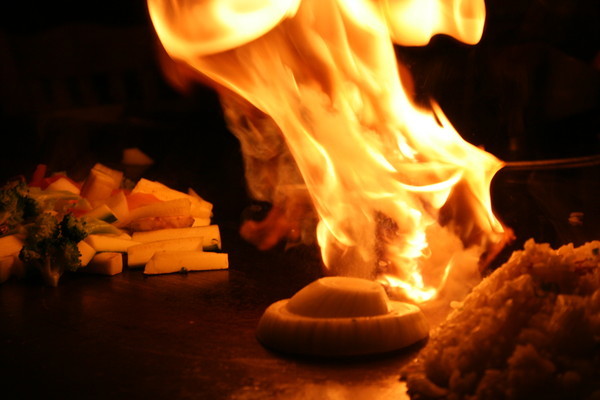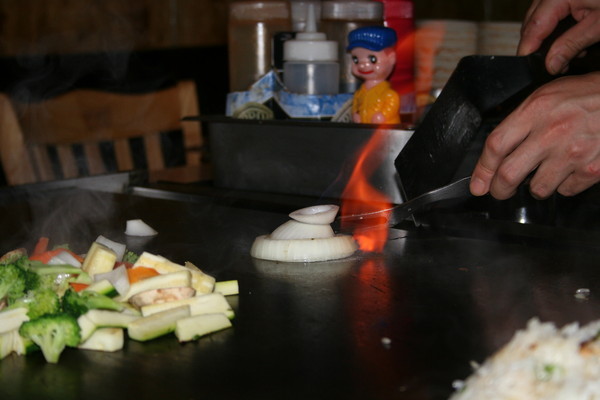 Accompaniments: Suimono Soup, salad, 2 pieces of shrimp, Hibachi vegetables, and a choice of steamed white rice OR fried rice